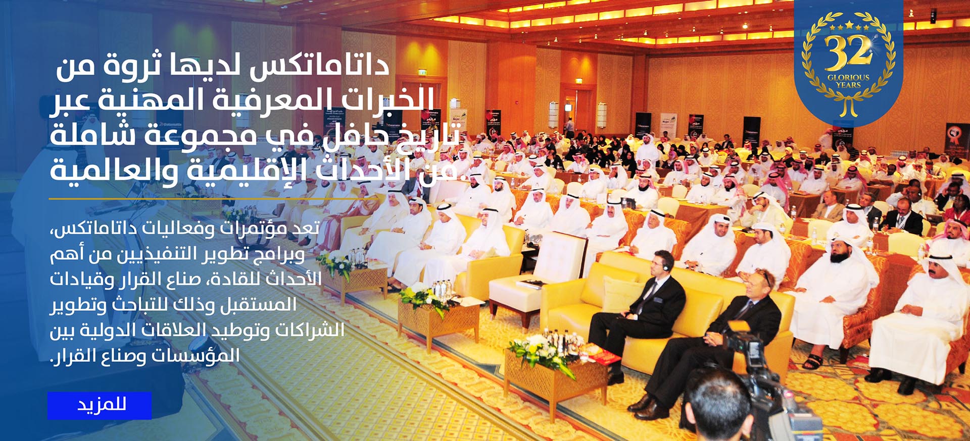 إنتهجت داتاماتكس المؤسسة الوطنية منذ ما يقرب من 34 عاماً من خلال كوادرها الوطنية، إستراتيجية معرفية عالمية لتسليط الضوء على التطورات الإدارية، القيادية، الاجتماعية، الاقتصادية، الاعلامية، التكنولوجية، المعرفية وتطورات علم الإدارة المبنية على أسس الاقتصاد المعرفي الحديث، حيث ساهمت داتاماتكس في تطوير مسيرة نظم التكامل المؤسسي والارتقاء بمستوى المحتوى المؤسسي بما يتناسب مع معايير التنافسية العالمية. كما نجحت داتاماتكس عبر مسيرتها الحافلة في إستقطاب أفضل الممارسات العالمية للمؤسسات الحكومية وقطاع الأعمال الى المنطقة. هذا وتعتبر احداث وفعاليات داتاماتكس من أهم الأحداث للقادة، صناع القرار وقيادات المستقبل وذلك للتباحث وتطوير الشراكات وتوطيد العلاقات الدولية بين المؤسسات وذلك عبر التواصل وتعزيز الترابط والتكامل وتبادل الخبرات وتقريب الحضارات والثقافات العالمية من أجل تحقيق إستدامة التطوير. تقوم داتاماتكس منذ ما يقرب من 34 عاماً، بتنظيم المؤتمرات والأحداث وفق المعايير التنافسية العالمية، وذلك للمساهمة في تطوير المعرفة لدى المؤسسات والمجتمع، ونقل أفضل الممارسات والخبرات العالمية الى المنطقة حتى تترسخ فيه الأسس والمبادئ القيادية الناجحة حول إدارة المعرفة والإقتصاد الرقمي الحديث.